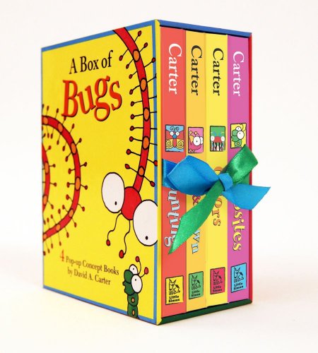 This brightly colored BUGS boxed set from David A. Carter will include four mini pop-up books united by a first concept theme. Package includes: Colors, Opposites, Counting and Up & Down.