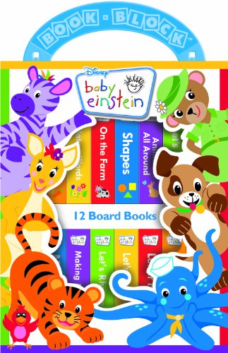 The Baby Einstein 12-Book Library is a collection of educational books from Disney s popular Baby Einstein series. Designed for children ages 10 months and older, the library consists of 12 three-square-inch board books that come in a keepsake storage box. The storage box has a convenient handle for easy carrying, as well as a colorful design. The board books are ideal size for little hands and they are able to withstand rough handling.